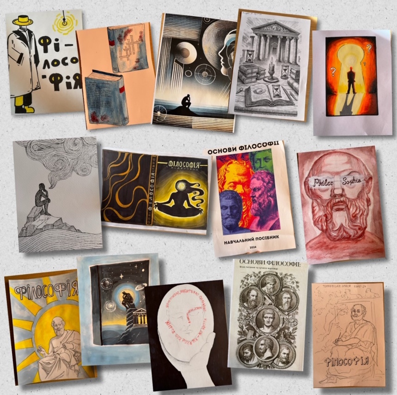 As part of the International Philosophy Day, a competition of students' creative works "Philosophy through the Eyes of Students" was held. Students were tasked with developing a layout for the title page of a philosophy textbook, and accordingly, they had to visualize an idea of what philosophy is, the subject of its research, and its genesis.