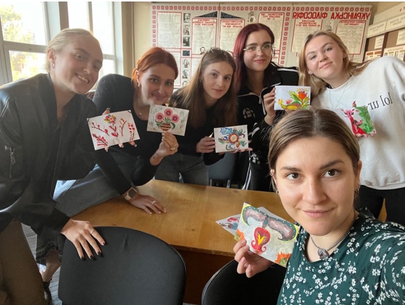 A lecture and master class on Samchykiv painting and making scented sachet cards were held for 3rd year students of the Culturology specialty - members of the scientific circle. The topic of the lecture: "Visual features of Ukrainian symbolism. Samchykiv painting". The curator and moderator of the event is the deputy director of the National Institute of Cultural Heritage for Educational Work Chernyak D.S. - head of the circle., lecturer - candidate of cultural studies - Dannyk K.O.