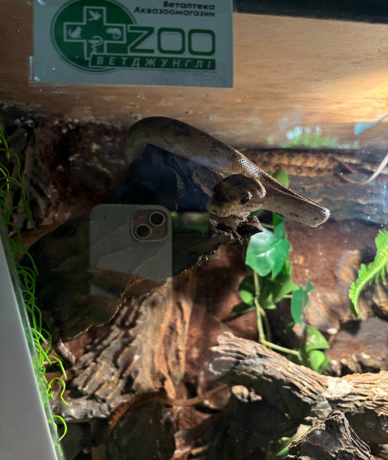 The highlight of the House of Nature is the largest open collection of tropical freshwater aquarium fish and plants in Ukraine. On that day, visitors to the exhibition witnessed a rare event — a female garden boa gave birth to live offspring. The garden boa is a viviparous, non-venomous species, also known as the Amazonian tree boa.