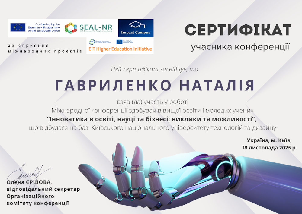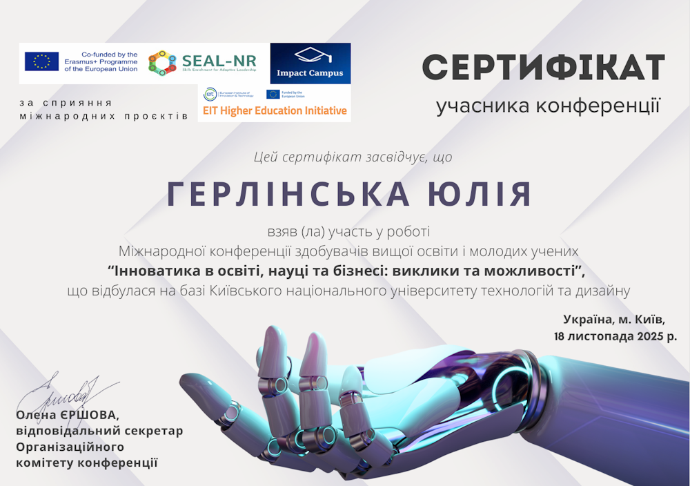 The club members took an active part in the International Conference «Innovation in Education, Science and Business: Challenges and Opportunities», which took place on 18 November 2025 at the Kyiv National University of Technologies and Design (Kyiv, Ukraine).