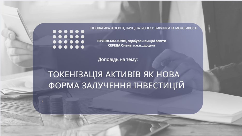 Yulia Gerlinska delivered a report «Tokenization of Assets as a New Form of Investment Attraction».