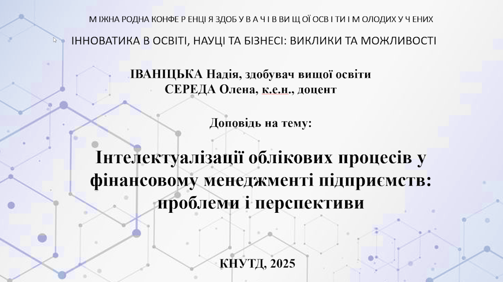 During the event, Nadiya Ivanytska presented a report «Intellectualization of Accounting Processes in Financial Management of Enterprises: Problems and Prospects».