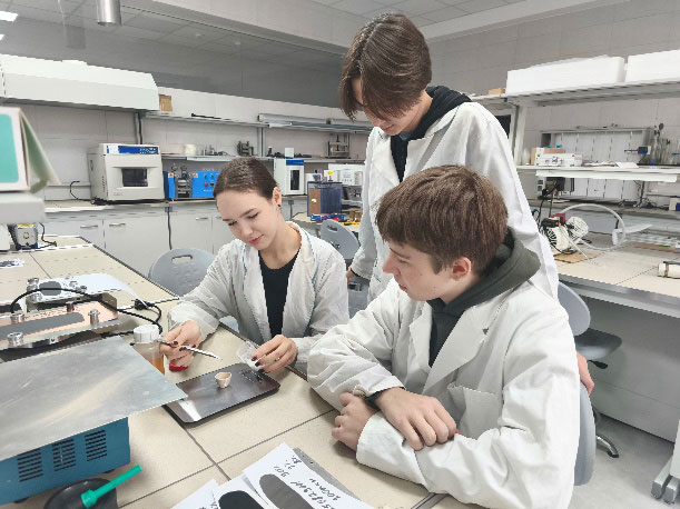 Meetings were held monthly in accordance with the approved plan, bringing together future specialists to study the complex processes involved in electromagnetic radiation shielding. Club members had a unique opportunity to progress from abstract ideas to real prototypes. In the laboratory, they synthesized electrically conductive polymer coatings, examined their structure under a microscope, and tested their ability to block electromagnetic signals.